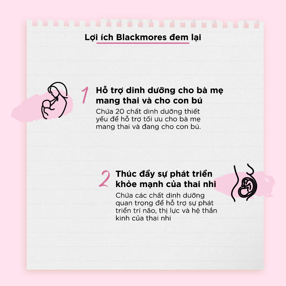 - Hoặc Chat với Blackmores ngay để biết thêm thông tin, lời khuyên và các mẹo để có được sức khỏe tốt trong suốt thời kì mang thai.