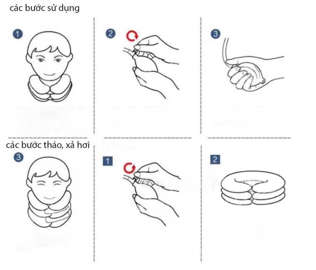 Đai Gối Hơi Đỡ Cổ Massage Hỗ Trợ Điều Trị Kéo Dãn Đốt Sống Cổ Sản phẩm được thiết kế dựa trên nguyên lý: bơm hơi tạo ra gối hơi đẩy căng giữa hàm, gáy và vai, giúp cho khớp đốt sống cổ được kéo giãn chống chèn ép dây thần kinh, làm cho máu lưu thông đi nuôi mô khớp. Với cơ chế làm phồng nhờ bơm hơi tay, giúp người dùng điều chỉnh được độ hơi cứng / mềm mà mình mong muốn, không bị cấn, tức cổ khi ngủ Đai gối hơi trị liệu kéo giãn đốt sống cổ được thiết kế phù hợp với mọi lứa tuổi, có tính cơ động cao giúp bạn có thể luôn đem theo bên mình. Chất liệu: mặt trong có lớp lót PVC giúp giữ hơi làm căng gối tăng khả năng kéo giãn cổ tốt hơn, mặt ngoài là lớp nỉ êm, nhẹ làm cho bạn có cảm giác dễ chịu khi dùng.