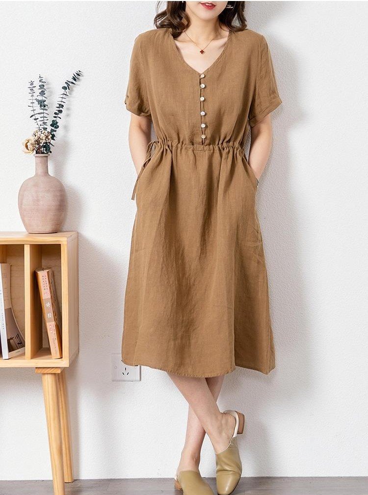 ღ THÔNG TIN SẢN PHẨM: Tên sản phẩm: Đầm nude cột eo Thông số size: S, M, L, XL Chất liệu: Chất đũi Chiều dài Đầm: Size S: 100 / Size M: 101 / Size L: 102 / Size XL: 103 Chi tiết sản phẩm: Không lót, không túi • Thương hiệu: NGADO • Xuất xứ: Việt Nam