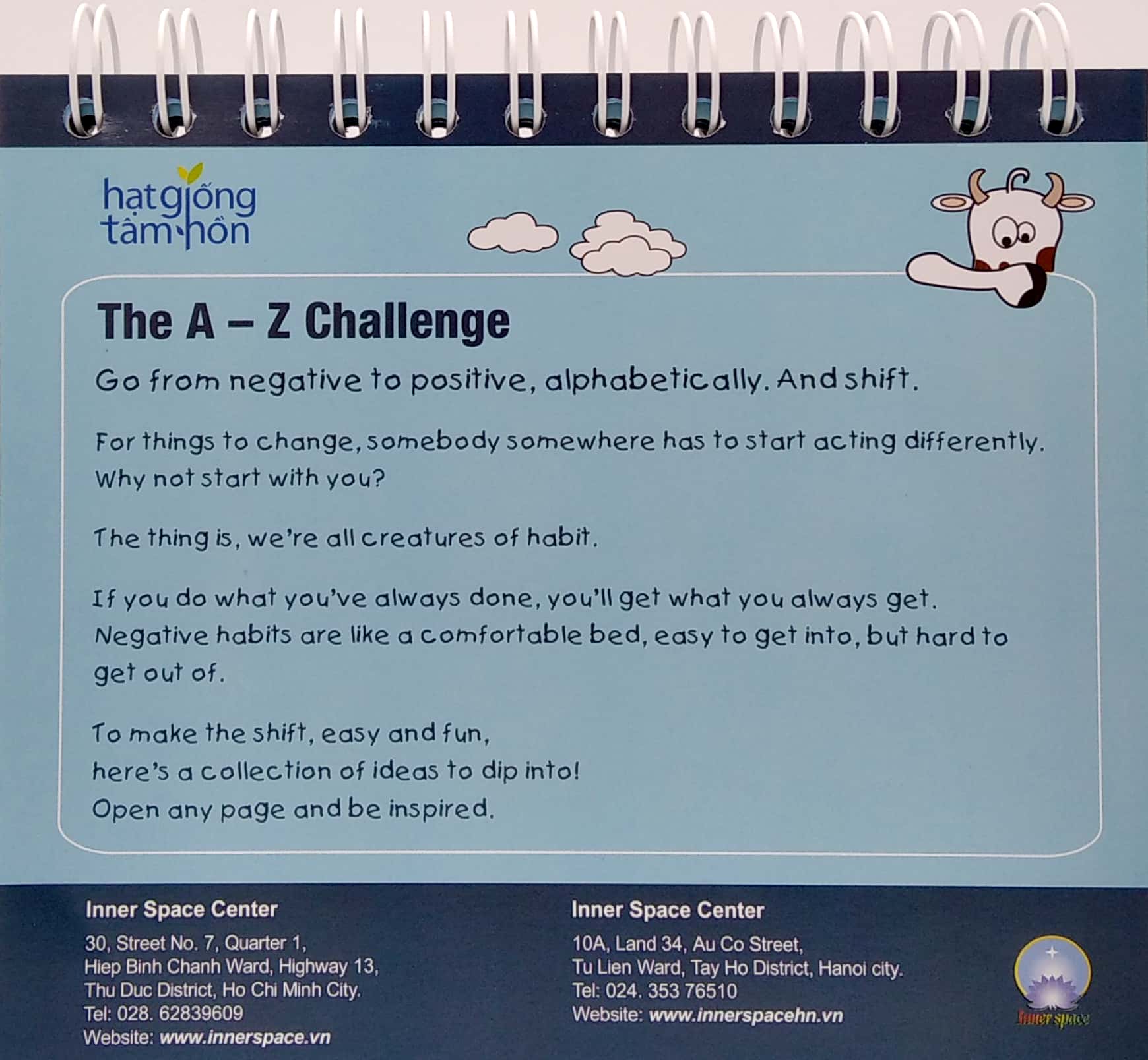 Dám Thay Đổi (được First News mua bản quyền và biên dịch từ The A to Z Challenge của tập đoàn BK Publications, Anh Quốc. Đây là cuốn sách có ý nghĩa sâu sắc về tinh thần, đặc biệt là cho những người đang ở trong tâm trạng và hoàn cảnh không thuận lợi, nhàm chán; mong muốn được thay đổi thái độ và nội tâm để có một tinh thần lạc quan, tích cực hơn.