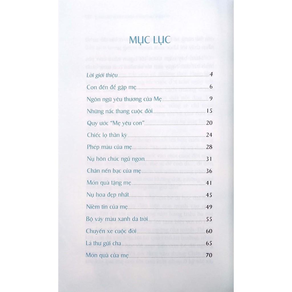 Trong từng trang sách, bạn sẽ tìm lại được những phút giây đồng cảm trong tình yêu thương, cảm xúc về Mẹ, tìm về ký ức tuổi thơ thân thương gắn bó bên Mẹ, và cả về những lỗi lầm, những suy tư trăn trở, về tất cả những gì Mẹ đã hy sinh cho chúng ta. Chúng ta hãy cùng đọc để suy nghĩ và dành những gì sâu sắc nhất cho Mẹ – người đã tạo ra chúng ta, đã, đang và sẽ mãi yêu thương chúng ta đến cuối cuộc đời.