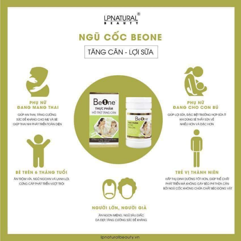 NGŨ CỐC BEONE Dinh Dưỡng Cho Cả Gia Đình Tặng Kèm Muối Ngâm Chân Sinh Dược 100G   Ngũ Cốc Cao Cấp BEONE Là Sản Phẩm Được Nhập Khẩu Nguyên Liệu Từ Úc Với Các loại Hạt Dinh Dưỡng Cao Bảo Vệ Sức Khỏe Ngũ cốc Beone có công dụng gì? PHỤ NỮ ĐANG MANG THAI: Giúp an thai, tăng cường sức đề kháng cho cả mẹ và bé. Giúp thai nhi phát triển toàn diện. PHỤ NỮ ĐANG CHO CON BÚ : Giúp lợi sữa, đặc biệt các mẹ ít sữa khi dùng sẽ thấy sữa nhiều, mát và đặc hơn. TRẺ VỊ THÀNH NIÊN : Hấp thụ dinh dưỡng tốt hơn, thể chất phát triển vượt trội mà không gây béo phì bởi ngũ cốc không chứa chất béo động vật     NGƯỜI GẦY YẾU, ĐANG HỒI SỨC : Với thành phần dinh dưỡng cao sẽ giúp thể trạng bình phục mau, bồi bổ sức khỏe và tăng cân tự nhiên. NGƯỚI LỚN VÀ NGƯỜI GIÀ : Dùng Beone giúp ăn ngon miệng, ngủ sâu giấc, tăng cường sức đề kháng, thể trạng phát triển, loại bỏ độc tố. Ngoài ra còn giúp đẹp da. Tại Sao Ngũ Cốc Beone Lại Có Công Dụng Tuyệt Vời Đến Vậy! Đó là vì Beone được nghiên cứu từ đội ngũ chuyên gia dinh dưỡng hàng đầu thuộc đại học MONASH – Australia. Thành phần 100% natural, không chất bảo quản, không phụ gia, gồm các hạt giàu dinh dưỡng như ý dĩ, hạt kê, quả óc chó, hạnh nhân, yến mạch, hạt sen, bột cà rốt, gạo lứt và các loại đậu...   HẠT KÊ : Hạt kê hòa trung, khỏe tì vị, bổ thận, giải độc, tiêu khát, lợi tiểu... HẠT Ý DĨ (BO BO): Tác dụng thanh nhiệt, lợi tiểu, lợi thấp, kiện tỳ, bài mủ và thư cân hoạt lạc... QỦA ÓC CHÓ: Chống oxy hóa, nhiều protein, vitamin,  omega-3, tinh dầu và khoáng chất, chất xơ, sữa... HẠT SEN : Có vị ngọt, tính bình giúp an thần, đẹp da, chống lão hóa, hết thiếu máu... YẾN MẠCH : Tăng cường hệ miễn dịch, tốt cho tiêu hóa, Làm sạch mỡ xấu ở thành động mạch ĐẬU XANH, ĐẬU ĐỎ, ĐẬU ĐEN, ĐẬU NÀNH...VÀ 15 LOẠI KHÁC: Rất giàu dinh dưỡng, bổ sung các dưỡng chất cần thiết cho cơ thể phát triển... Hướng dẫn pha ngũ cốc Beone