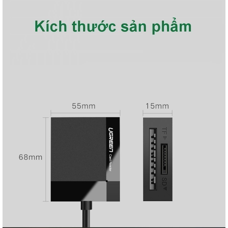 Đầu đọc thẻ SD/TF chuẩn USB 2.0 UGREEN CM264 60721 - Hãng phân phối chính thức