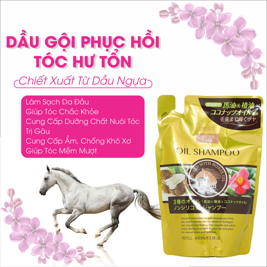 ✨Dầu Gội Đầu Phục Hồi Tóc Yếu Dễ Gãy Rụng Chiết Xuất Tinh Dầu Ngựa Deve Natural Oil Shampoo (Chai 480 mL)