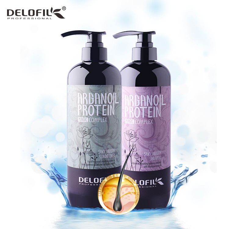 ✨Dầu gội xả sạch gàu, kiềm dầu, mềm mượt chống gãy rụng phục hồi tóc Delofil Silky Smooth 500ml:
