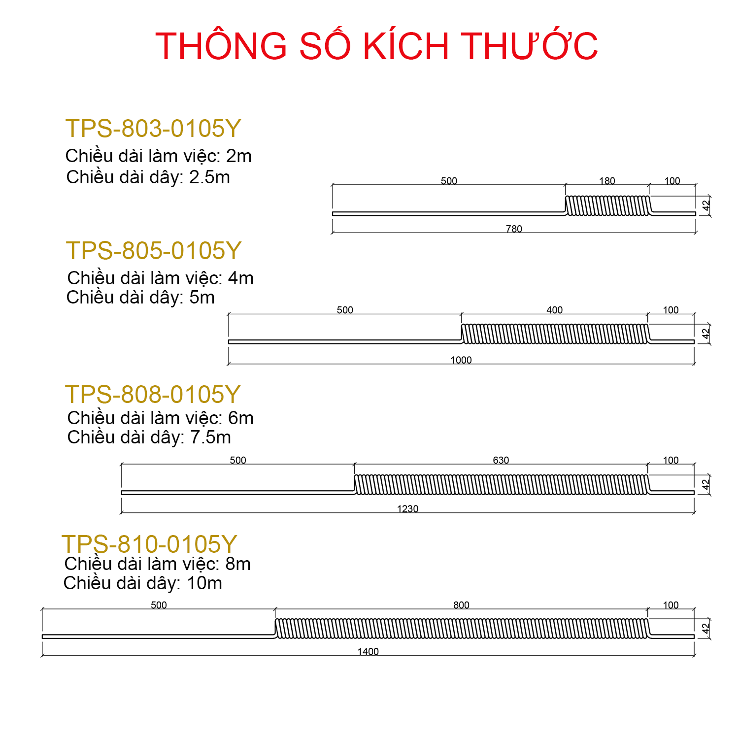 Ống xoắn Polyurethane Spiral Tubing TPS là dòng ống chuyên dụng của Chiyoda, thích hợp để dẫn khí nén. Điểm nổi bật của ống dẫn Polyurethane Spiral (TPS): • Ống mềm dẻo, linh hoạt. • Có thể kết hợp với đầu nối nhanh. • Có khả năng chống nước tốt, dùng để dẫn khí hoặc nước công nghiệp • Khả năng chống dầu tuyệt vời. Lý tưởng cho đường ống dẫn khí nén trong nhà máy. • Độ bền cơ học cao, chống mài mòn vượt trội. • Kích thước ống có độ chính xác cao như đã công bố.