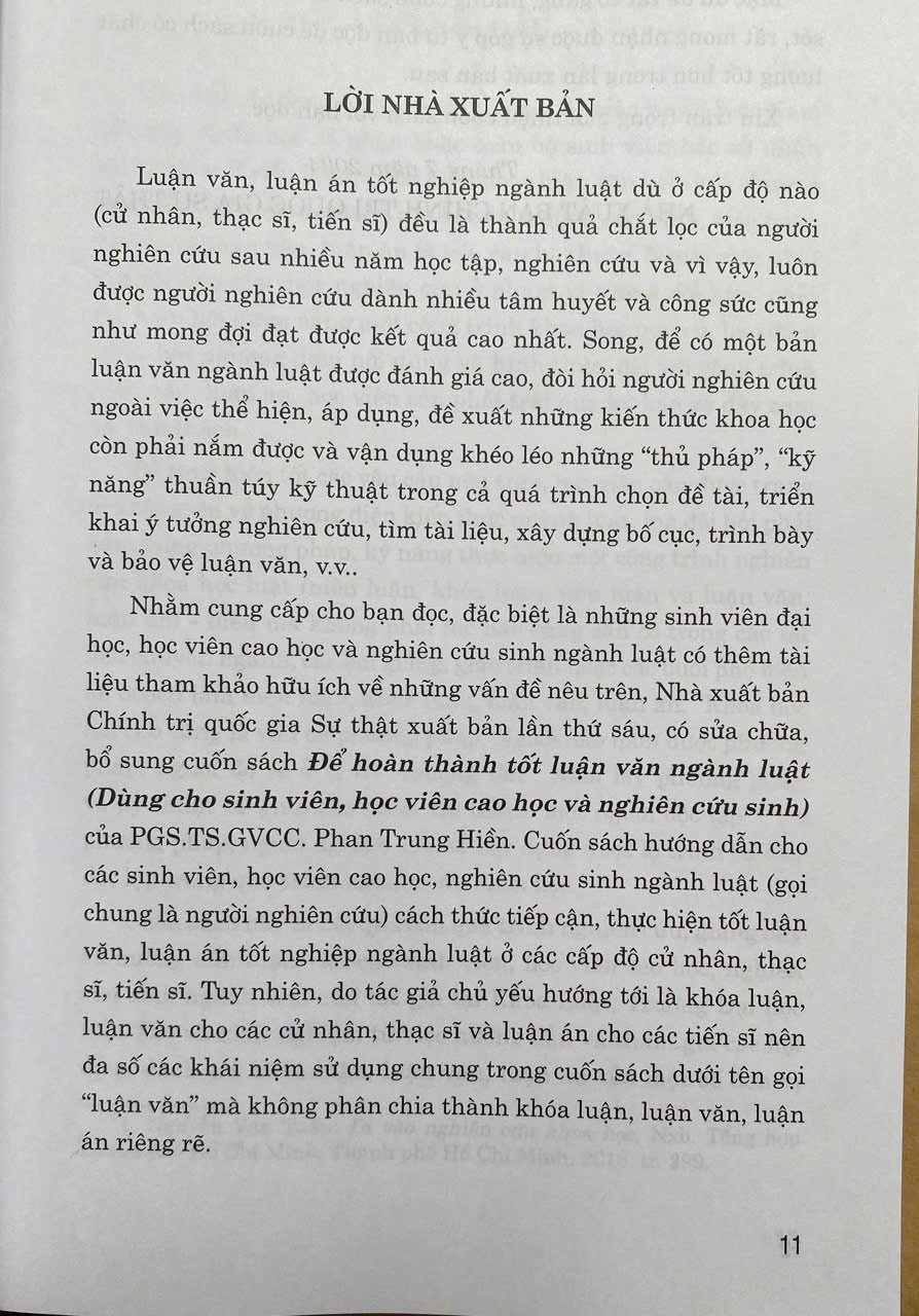 Để Hoàn Thành Tốt Luận Văn Ngành Luật (tái bản lần thứ sáu, có sửa chữa, bổ sung) Tác giả: Phan Trung Hiền Nhà xuất bản: Nhà xuất bản Chính trị Quốc gia sự thật
