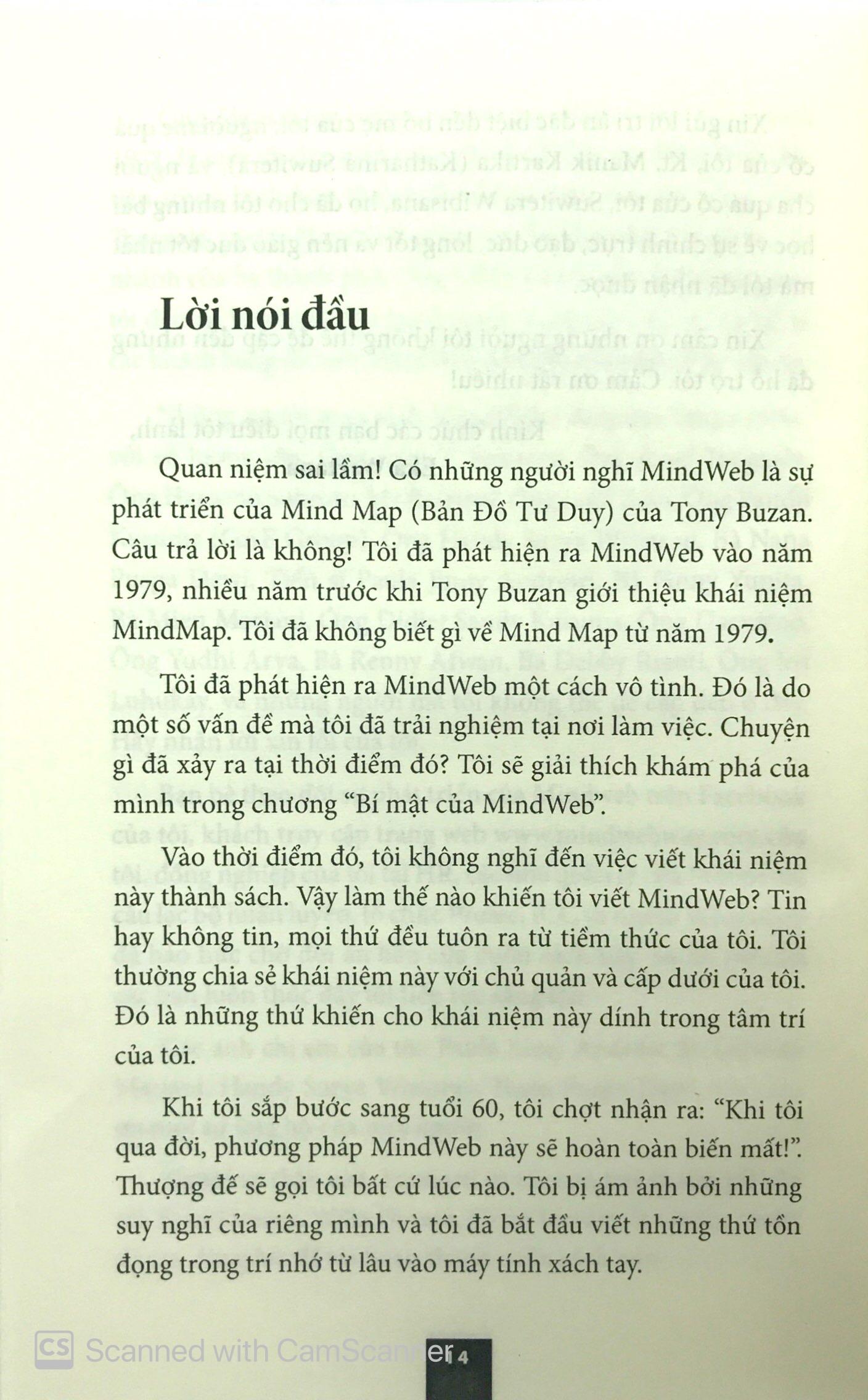 Vào thời điểm đó, tôi không nghĩ đến việc viết khái niệm này thành sách. Vậy làm thế nào khiến tôi viết MindWeb? Tin hay không tin, mọi thứ đều tuôn ra từ tiềm thức của tôi. Tôi thường chia sẻ khái niệm này với chủ quản và cấp dưới của tôi. Đó là những thứ khiến cho khái niệm này dính trong tâm trí của tôi.