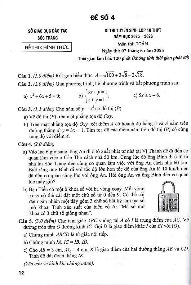 Bám sát cấu trúc đề thi Toán vào 10 năm 2025 mới nhất.