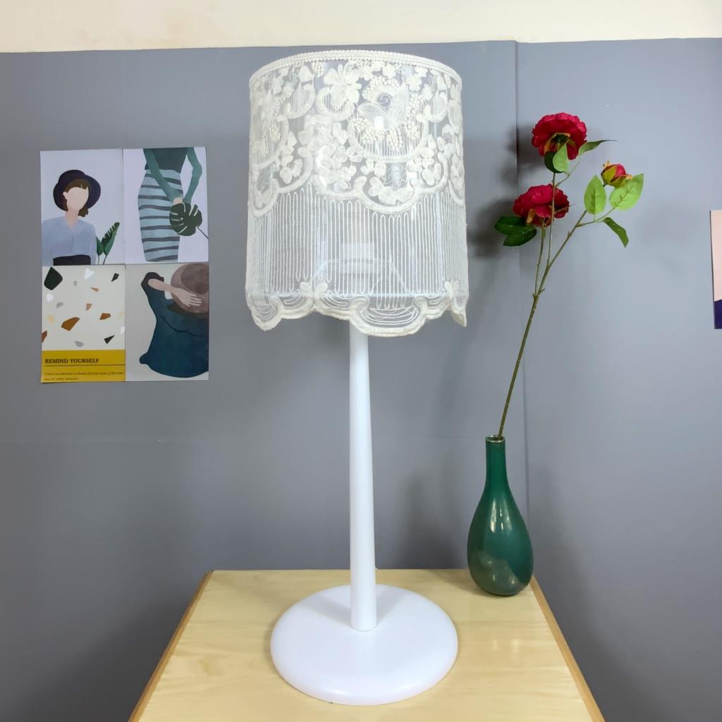 Gỗ tự nhiên, vải ren cao cấp, khung thép sơn tĩnh điện Giấc mơ tuyết trắng kích thước đèn: 26x26x60 kích thước đóng gói: 40x40x30 Đui đèn E27, kèm bóng đèn LED BULB 5W -điện áp 220v- nhiệt độ màu 6500/3000 ChipLed SAMSUNG