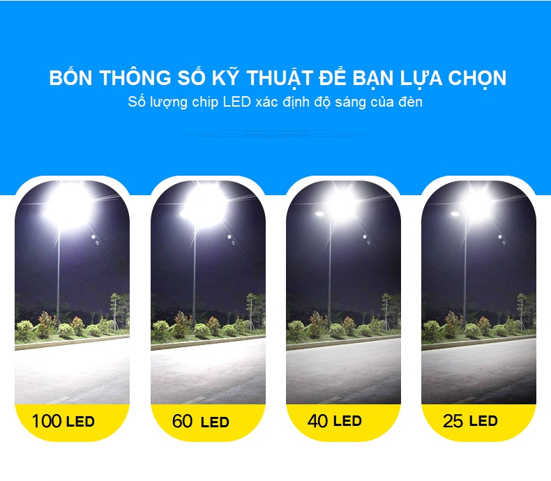 Đèn Led Năng Lượng Mặt Trời Chiếu Sáng Ngoài Trời IP65 100W Phù hợp cho chiếu sáng đường phố, lối đi, khu khuân viên, sân vườn, trang trại và khu sinh thá - Đèn đường năng lượng mặt trời sử dụng thuần năng lượng mặt trời cho mục đích chiếu sáng