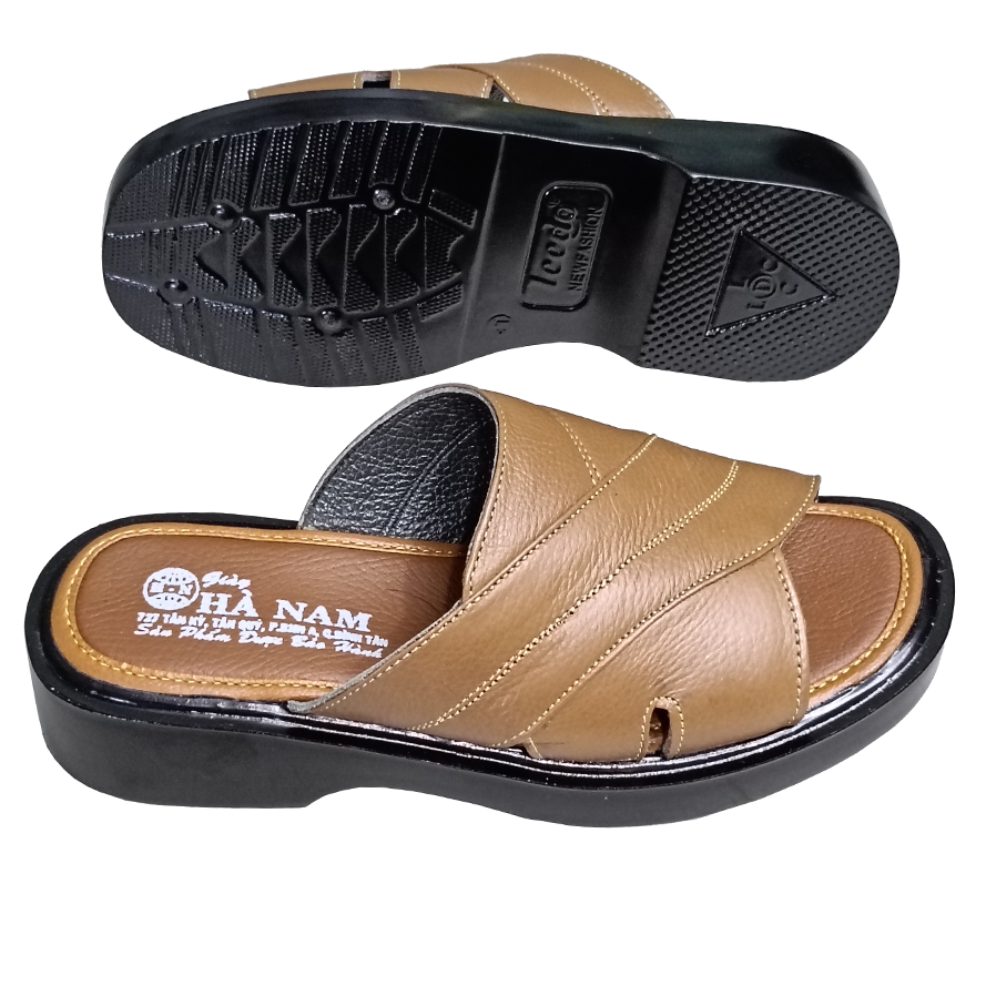 DÉP NAM DA BÒ CAO CẤP - THƯƠNG HIỆU HÀ NAM - Da bò thật, bền đẹp: Dép nam được làm từ 100% da bò thật, mềm mại, thoáng khí, đảm bảo độ bền cao