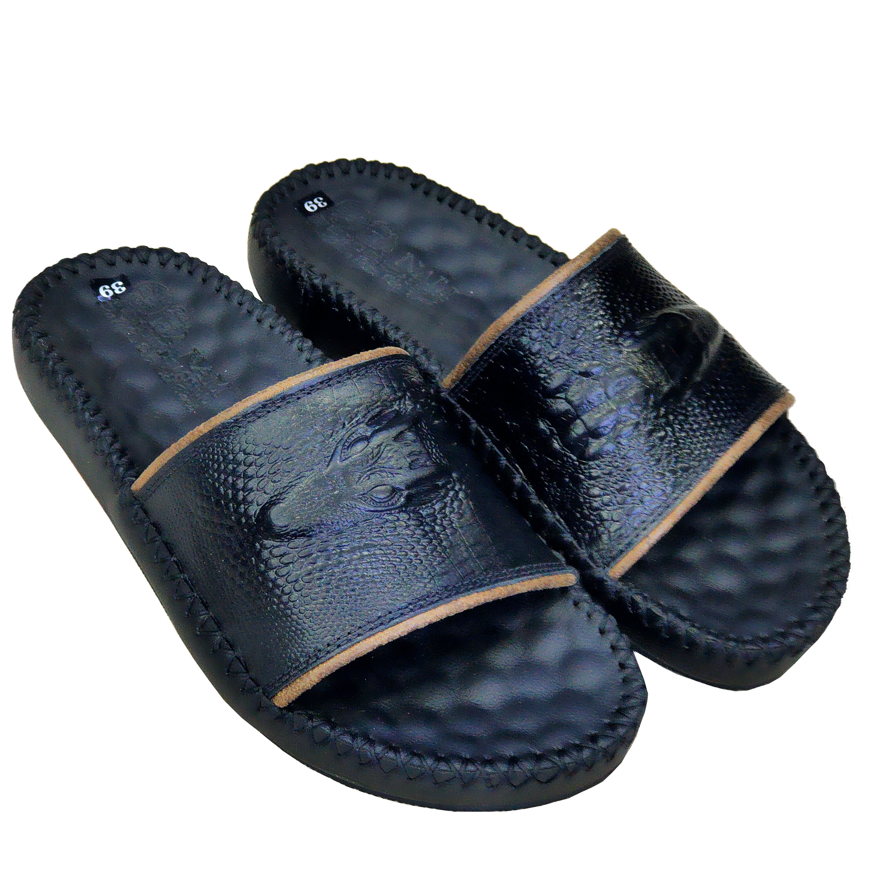 DÉP NAM BA QUAI DA BÒ,QUAI CÓ GẮN KHUY ĐẸP MẮT Dép quai ngang cá sấu da bò 100% Chất liệu: Da bò thật thật 100% da bò tự nhiên Đế cao su tốt đi