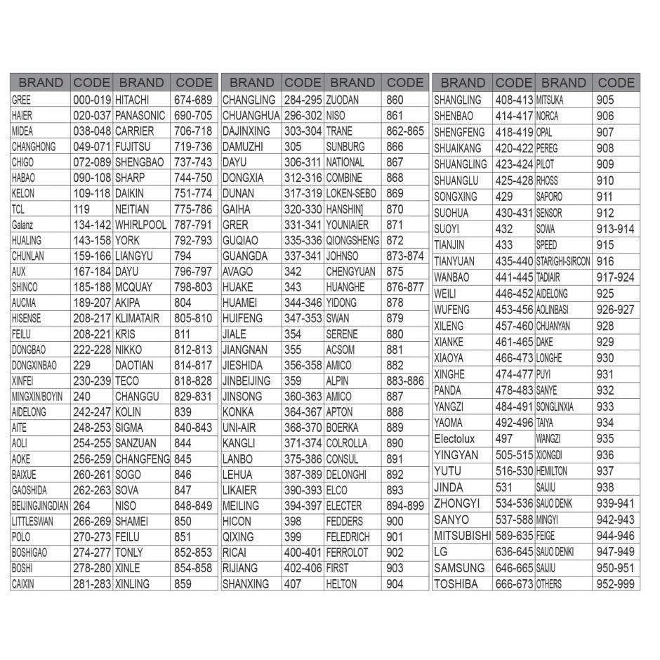 MÔ TẢ SẢN PHẨM: Con cái đập tan tành remote máy lạnh, tivi, quạt…. là chuyện thường ngày, vậy thì khi nát rồi ta lấy gì mà thay đây. Vì vậy, chỉ cần bạn sử dụng Remote đa năng sử dụng được cho tất cả máy lạnh xưa và nay một cách tiện lợi và giá cực rẻ. Từ giờ trở đi các bậc cha mẹ không còn lo lắng nỗi lo khư khư ôm remote đi cất nữa rồi nhé. Rất đơn giản, chỉ bạn cần hướng REMOTE MÁY LẠNH ĐA NĂNG vào máy lạnh, nhấn nút ON. Sau đó bấm SET mục đích để REMOTE MÁY LẠNH ĐA NĂNG dò đúng mã code tương ứng. Khi thấy Remote dò đúng mã CODE của máy lạnh (Mã CODE có trong bản hướng dẫn trong hộp) bạn bấm OK! Từ đó là bạn có thể điều khiển máy lạnh dễ dàng. Thông số kỹ thuật: Tần số của các loại máy Nhãn hiệu - Tần số cho Haier - 20-37 cho Daikin - 751-774 cho Electrolux - 497 cho Fujisu - 719-736 cho Gree - 0-19 cho Hitachi - 674-689 cho LG - 636-645 cho Mítubishi - 589-635 cho Panasonic 690-705 cho Samsung - 646-665 cho Sanyo - 537-588 cho Sharp - 744-750 cho TCL - 119 cho Toshiba - 666-673 Hướng dẫn sử dụng: Bước 1: Bật điện vào điều hòa. Hướng điều khiển về mắt nhận tín hiệu trên điều hòa. Bước 2: Bấm và giữ nút “SET” (khoảng 3 đến 5 giây) cho đến khi mã tần số trên màn hình nhấp nháy,Ấn nút tăng/giảm Nhiệt Độ▲ ▼ cho đến khi chọn được tần số thích hợp (VD: Tầng số điều hòa cho Fujitsu là từ 719 đến 736). Khi chọn đúng mã, điều hòa sẽ bận lên hoặc có tiếng kêu tít tít. (bấm giữ nút tăng để nhảy số nhanh) Bước 3: Bấm nút “Set” để xác nhận, khi đó tần số được xác lập và mã tầng số sẽ hết nhập nháy. Bước 4: Kiểm tra xem các nút trên điều khiển đã hoạt động đúng hay không. Nếu hoạt động đúng có nghĩa quá trình cài đặt đã hoàn tất.