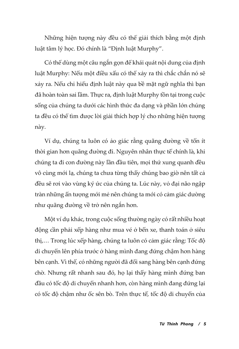 Có phải hằng ngày bạn hay gặp những chuyện dở khóc dở cười tương tự như vậy? Những hiện tượng này đều có thể giải thích bằng một khái niệm tâm lý học thú vị: Định luật Murphy. Nó nhắc nhở chúng ta rằng việc xấu luôn có “cơ may” cao hơn và sai lầm luôn là một phần của thế giới này. Dù cho mỗi chúng ta đều cố gắng hết sức để tránh khỏi sai lầm, nhưng trên thực tế đó là điều bất khả thi.