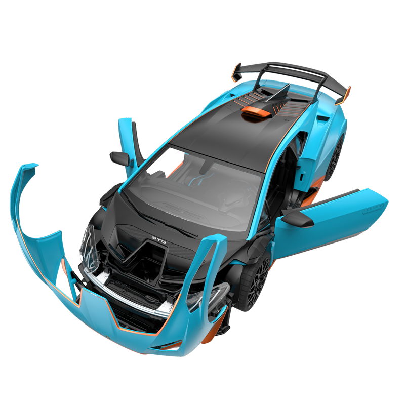 - Mô phỏng tinh xảo, tỉ mỉ từng chi tiết so với xe Lamborghini Huracan STO ngoài đời thật