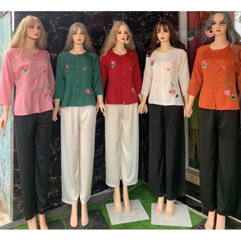✨Đồ Lam Đi Chùa# Bà Ba Vải Cao Cấp Thêu Hoa # Quần Áo Nữ # Đồ Bộ Nữ