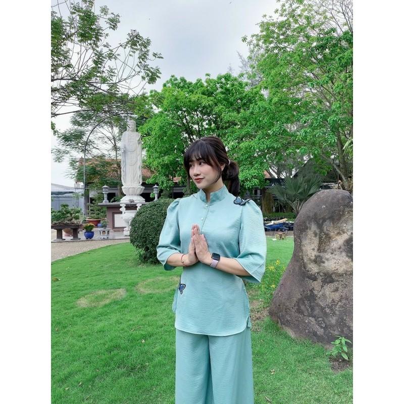Quần áo phật tử, đồ lam đi chùa mẫu lụa đính bướm A53, shop Hồng Phúc An