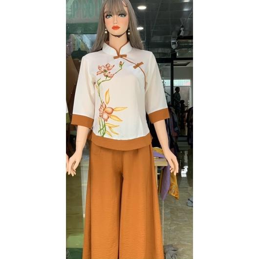 Chất Vải Lụa Pháp Phối Gấm Cao Cấp Hoặc Vải Lụa Phối Gấm Tuỳ Màu Và Size Nên Chất Vải Khác Nhau Quần Ống Rộng Cổ Áo Chui Không Cài Nút BÁN LẺ GIÁ SỈ