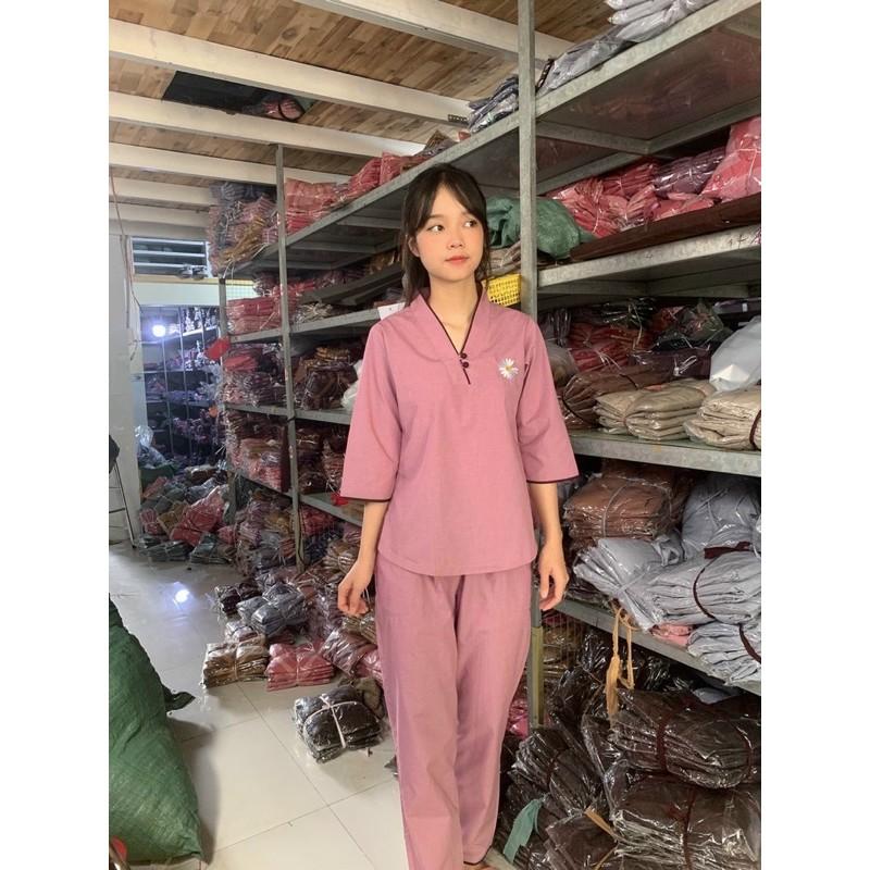 (Ảnh + Video shop tự quay) Bộ đồ lam đi chùa cổ tàu thêu sen gồm cả áo và quần, áo được thêu sen, quần có túi . Size: 24/26/28/30/32/34/36 ( tham khảo bảng chọn