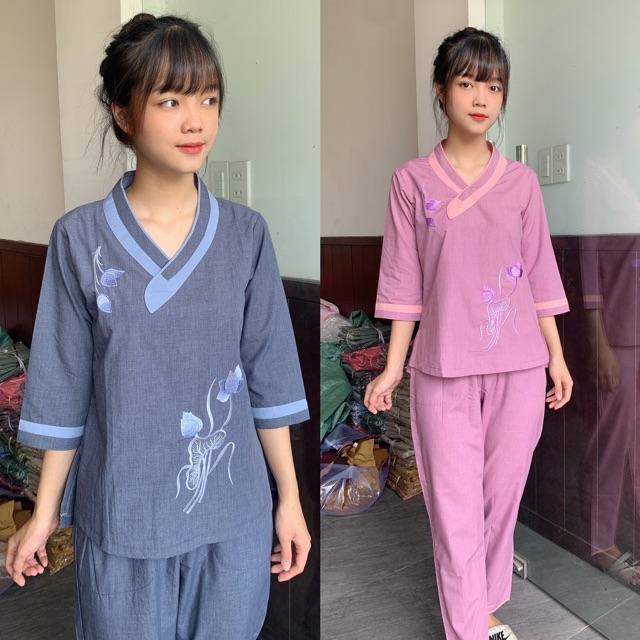 Bộ đồ lam đi chùa thêu sen phối tay nè #thaojireview #thaoji #review #reviewquanao