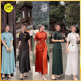 Chất Vải Lụa Pháp Phối Gấm Cao Cấp Hoặc Vải Lụa Phối Gấm Tuỳ Màu Và Size Nên Chất Vải Khác Nhau Quần Ống Rộng Cổ Áo Chui Không Cài Nút BÁN LẺ GIÁ SỈ