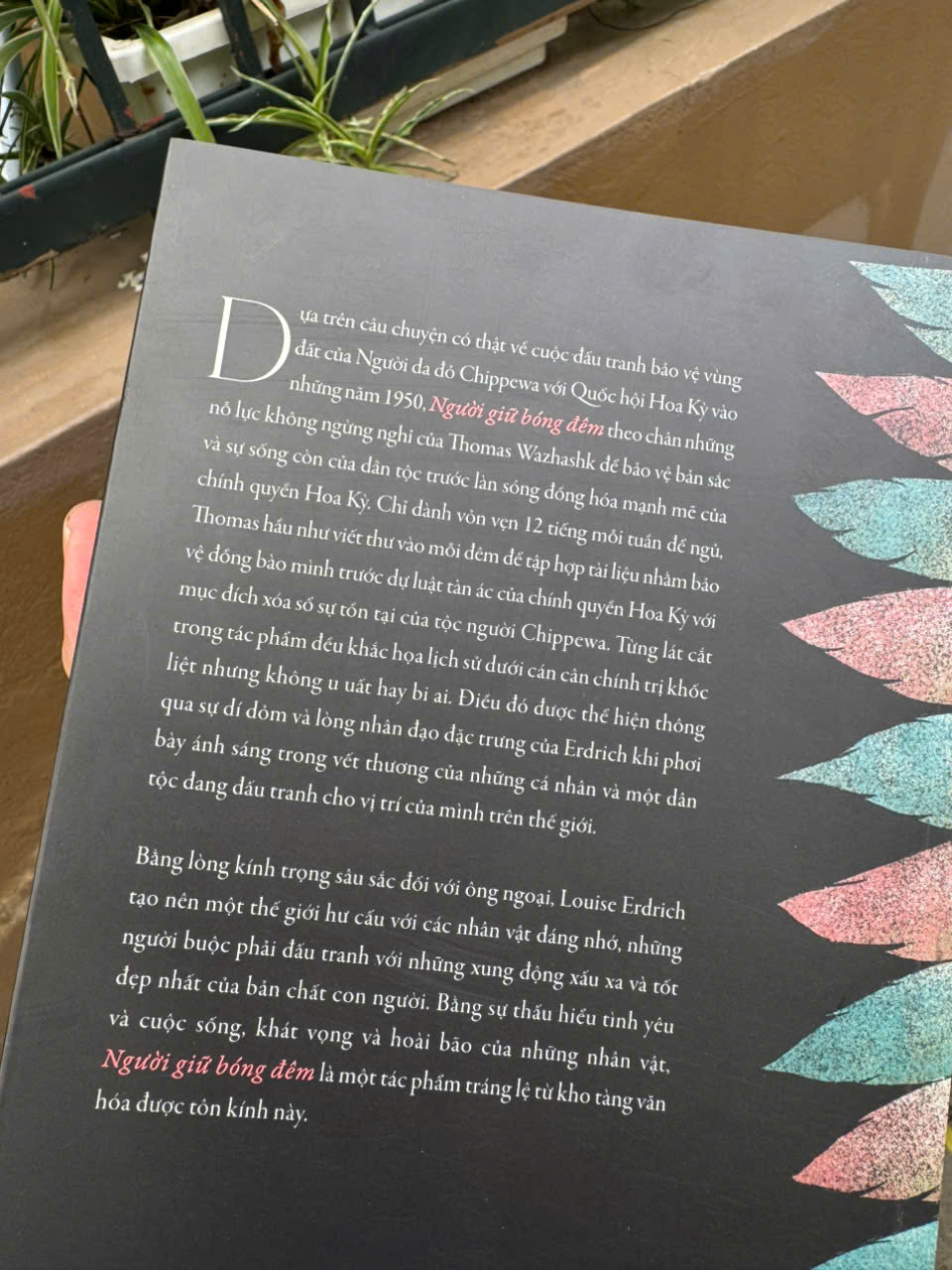 Người giữ bóng đêm là tiểu thuyết lịch sử nổi bật của nhà văn người Mỹ bản địa Louise Erdrich, đoạt giải Pulitzer Prize for Fiction 2021. Lấy cảm hứng từ chính ông ngoại của tác giả – một người gác đêm và nhà hoạt động cộng đồng – cuốn sách kể lại cuộc đấu tranh của bộ lạc Turtle Mountain Chippewa chống lại chính sách “termination” vào thập niên 1950, một chính sách đe dọa xóa bỏ quyền công nhận chính thức của các bộ lạc bản địa tại Mỹ.