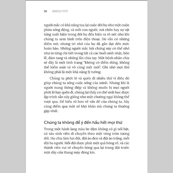 Trong một thế giới không ngừng “dội bom” chúng ta với hàng triệu thông tin mỗi ngày, sự đơn giản chính là chìa khóa để thông điệp của bạn không bị hòa lẫn trong ma trận đó. Mở đầu cuốn sách, Guttmann chia sẻ một số kiến thức cơ bản để giúp chúng ta hiểu rằng bộ não con người rất dễ bị quá tải khi đón nhận nhiều thông tin và yếu tố kích thích. Những thông điệp phức tạp không chỉ khó kết nối với não bộ mà còn thường khiến bộ não bối rối, áp lực và kém tập trung. Ngược lại, thông điệp đơn giản sẽ nổi bật vì chúng dễ hiểu, dễ nhớ và dễ phản ứng.
