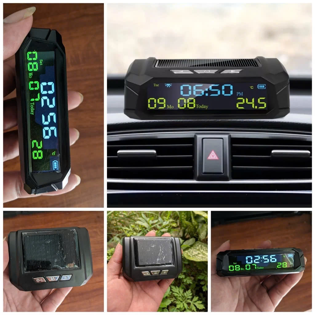 Đồng Hồ Gắn Ô Tô 3in1 Năng Lượng Mặt Trời Mẫu Mới: Báo Giờ, Ngày Tháng, Nhiệt Độ – Màn Hình LED Đa Năng Cực Tiện