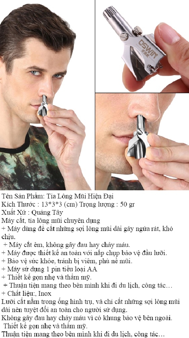 - Những sợi lông mũi mọc dài luôn làm bạn có cảm giác ngứa ngáy và khó chịu. Nếu để lâu ngày, chúng không chỉ gây mất thẩm mĩ mà còn có thể trở thành "thủ phạm" dẫn đến các bệnh về viêm mũi. Nay giới thiệu đến bạn dụng cụ cắt tỉa đi những sợi lông mũi vướng víu nhưng không làm tổn thương niêm mạc và khả năng khứu giác của bạn.