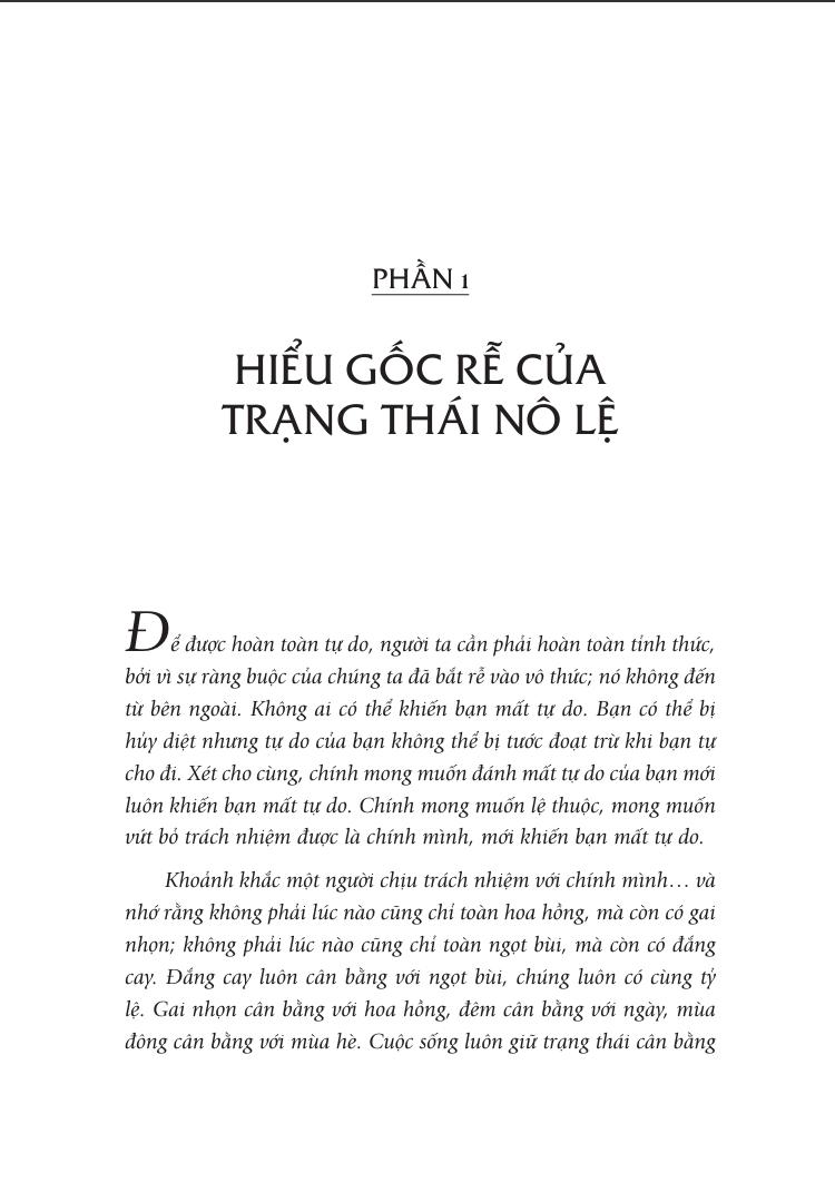 Với những chia sẻ đầy khai mở, cuốn sách “Tự do – Như chim tung cánh” giúp người đọc xác định những trở ngại đối với tự do của họ, có thể do hoàn cảnh hoặc do bản thân họ tự áp đặt, tìm thấy lòng dũng cảm để thành thật với chính m.ình. Và hãy lắng nghe lời Osho nhắn nhủ chúng ta: “Hãy sống với tất cả thống khổ tột cùng và hạnh phúc ngất ngây của cuộc sống – cả hai đều thuộc về bạn. Và luôn nhớ: Bạn không thể sống trong hạnh phúc ngất ngây mà không trải qua đau khổ tột cùng, sự sống không thể tồn tại nếu thiếu cái chết, và hân hoan không thể tồn tại nếu thiếu phiền muộn. Cuộc đời là thế, bạn không thể làm gì khác”.