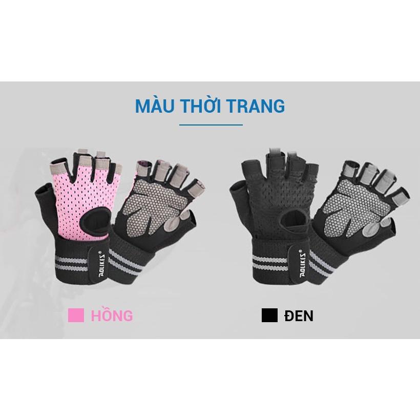 ✨Găng Tay Nửa Ngón Tập Gym, Tập Tạ Tích Hợp Quấn Cổ Tay Aolikes AL113B 113 AL113 (1 đôi) - Chính Hãng Aolikes