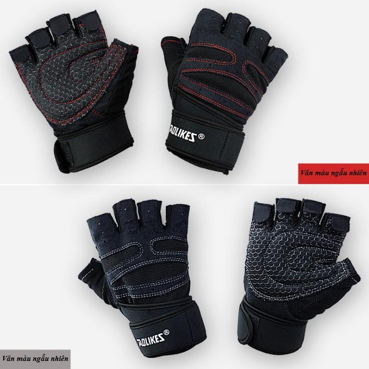 BÁN SỈ - Aolikes AL109 (1 đôi) Găng tay CÓ CUỐN CỔ TAY VÀ ĐỆM LÒNG chống trượt chuyên gym CHÍNH HÃNG