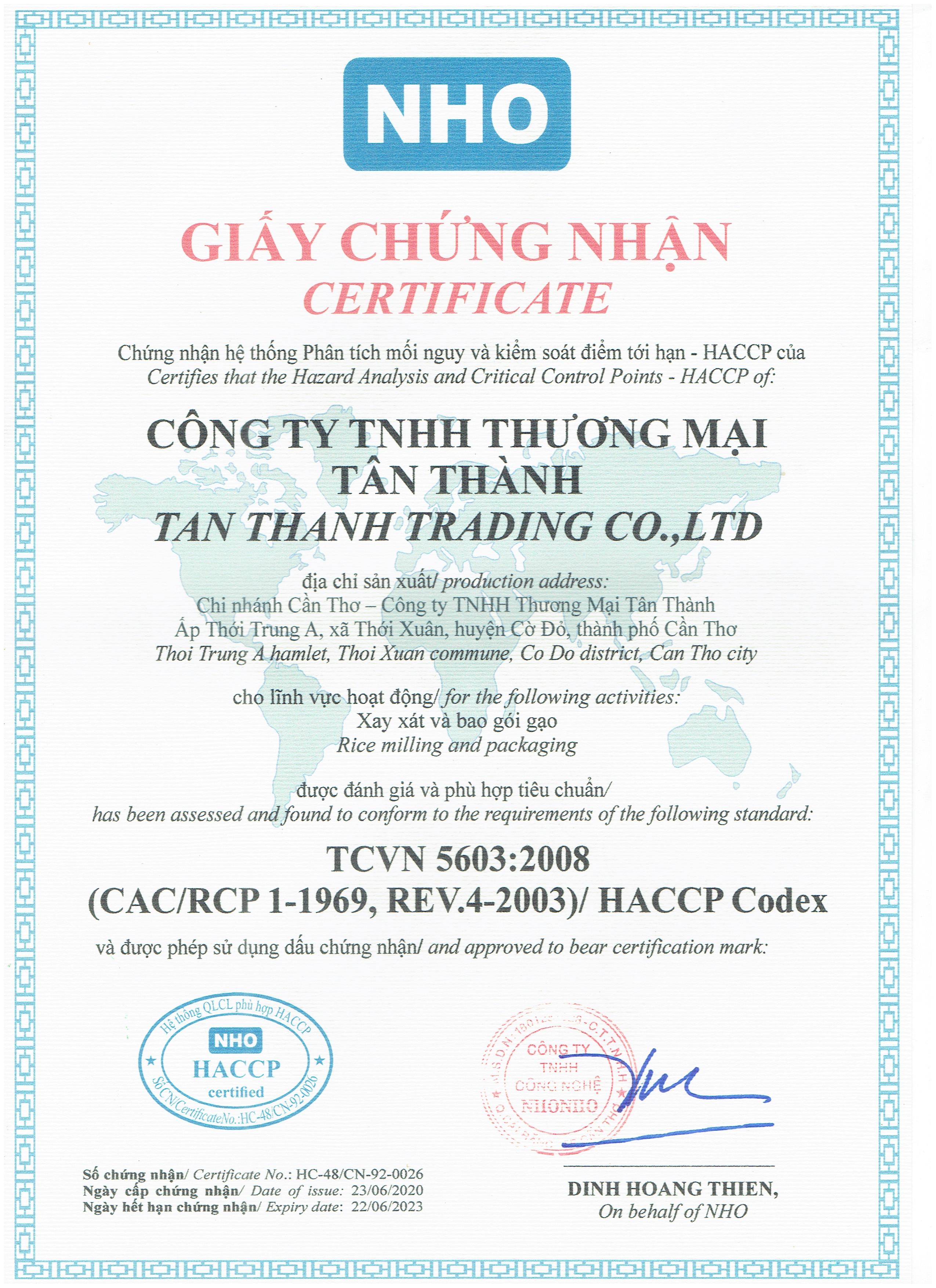 - Gạo sạch, đạt tiêu chuẩn Global G.A.P, đóng gói theo tiêu chuẩn Châu Âu (HACCP).