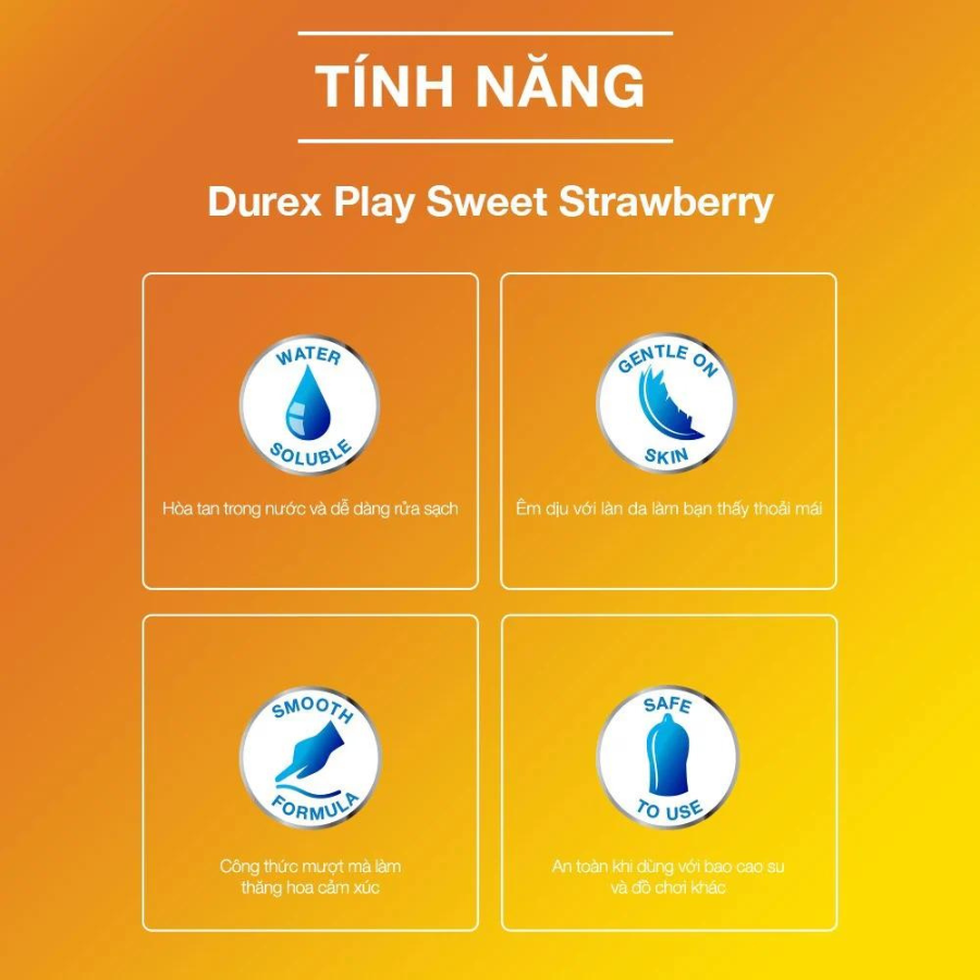 - Durex Play Warming làm tăng hương vị tình yêu bằng cảm giác ấm áp, ngọt ngào. Hãy thổi nhẹ trước khi quan hệ để tăng cường sự ấm áp, đậm đà hương vị tình yêu.