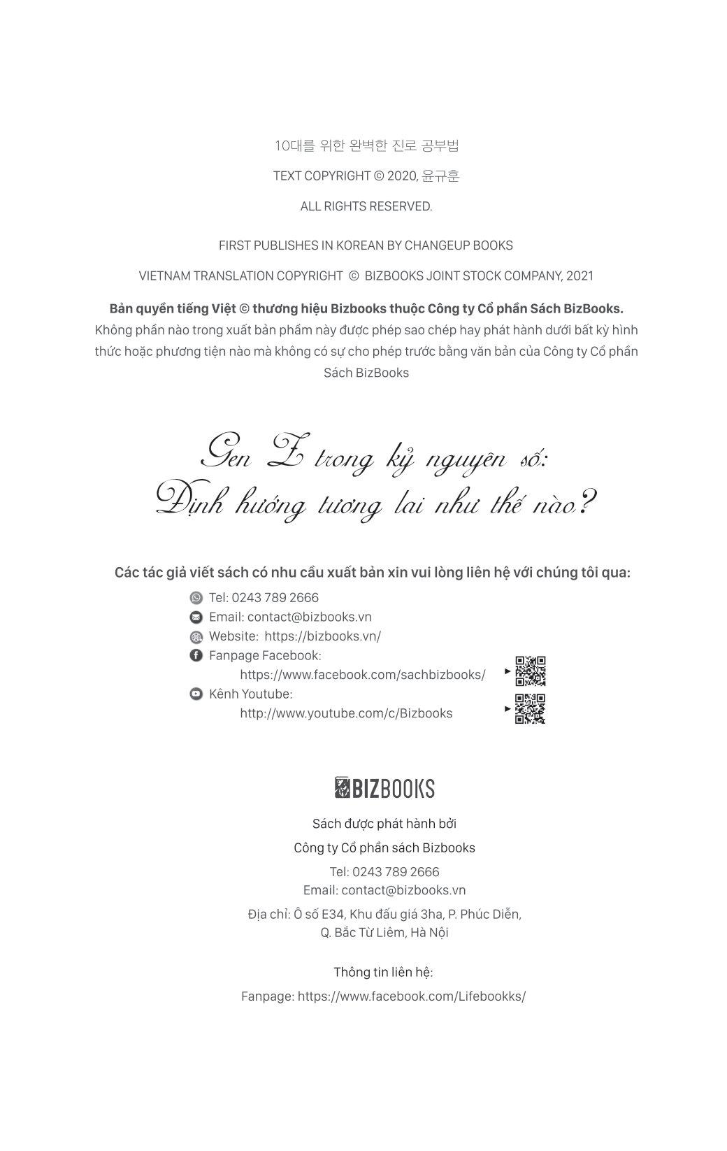 Trong cuốn sách Gen Z trong kỷ nguyên số: Định hướng tương lai như thế nào?, tác giả Yun Kyu Hoon thông qua những cuộc nói chuyện với hơn 330.000 thanh thiếu niên tại các trường trung học sẽ chỉ cho bạn thấy cách làm thế nào để vạch ra một con đường sự nghiệp tương lai đúng đắn dù bạn đã có đam mê hay chưa tìm ra. Việc định hướng này rất quan trọng, đặc biệt trong tình hình cả thế giới đang đối mặt với đại dịch covid và sự thay đổi chóng mặt do nền công nghiệp 4.0 mang lại. Những tư duy nào nên có, những nghề nghiệp nào nên được ưu tiên, những kỹ năng nào cần đào sâất cả đều đang chờ bạn lật mở cuốn sách này để khám phá.