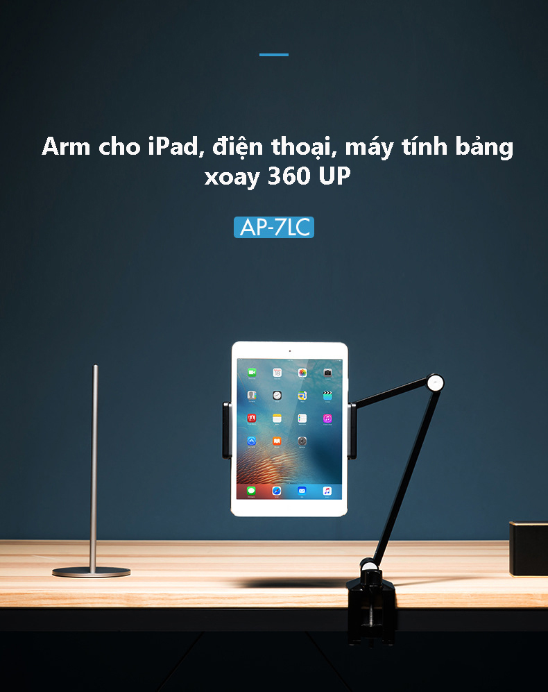 Giá đỡ iPad, điện thoại, máy tính bảng xoay 360 UP - AP-7LC Lý do bạn chọn sản phẩm này?! - Có thể di chuyển linh hoạt được như arm cho màn hình PC. -