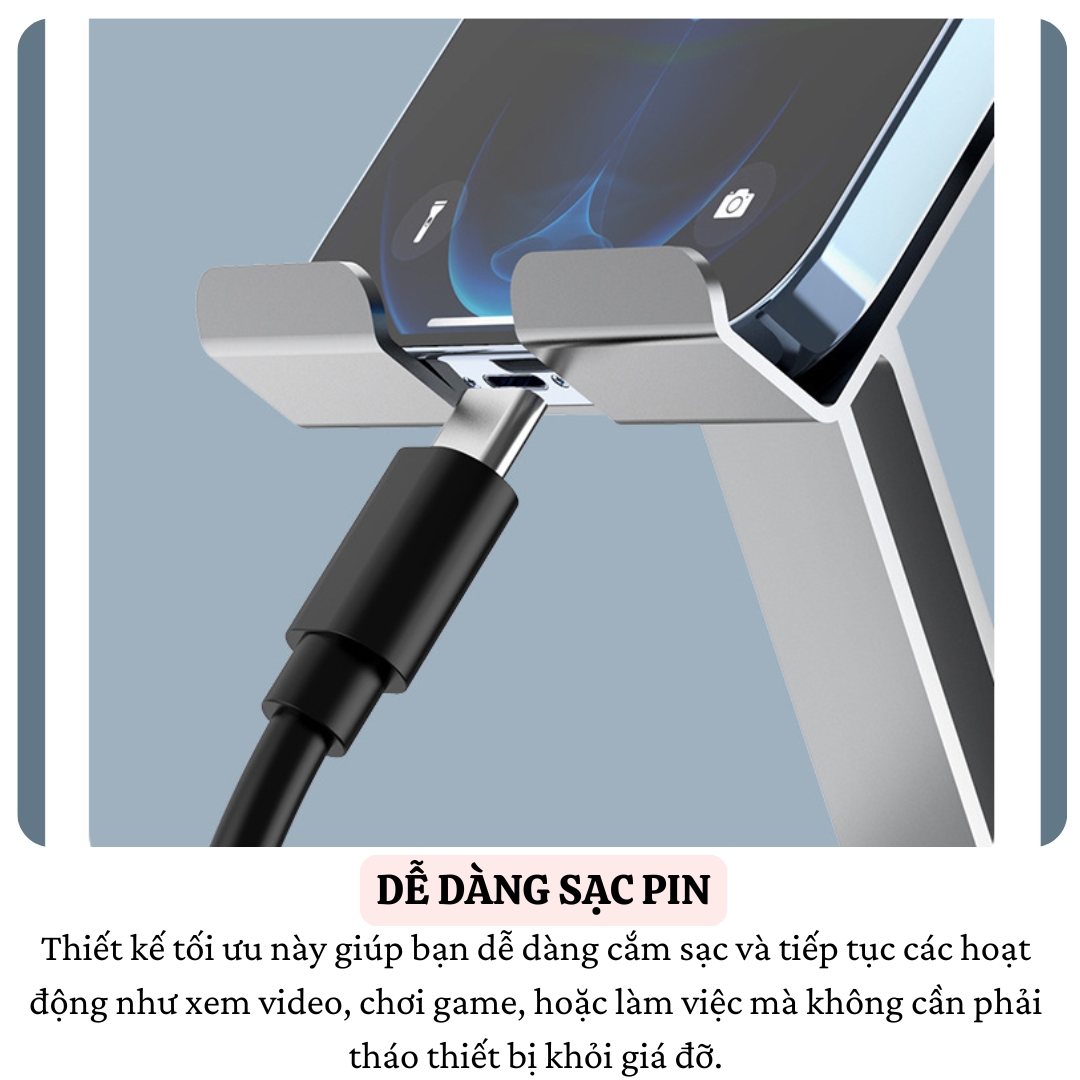 Không Chặn Cổng Sạc: Thiết kế thông minh không làm cản trở cổng sạc, cho phép bạn vừa sạc vừa sử dụng thiết bị mà không gặp trở ngại nào.
