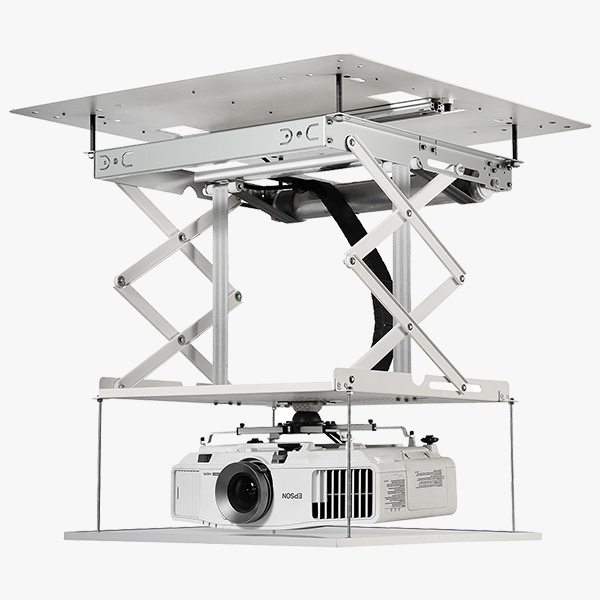 Giá treo điện âm trần là một thiết bị được sử dụng để gắn máy chiếu cố định lên trần. Với ưu điểm của khung treo điện tử, người dùng có thể linh hoạt điều chỉnh các chức năng của máy chiếu thông qua điều khiển từ xa thông minh.