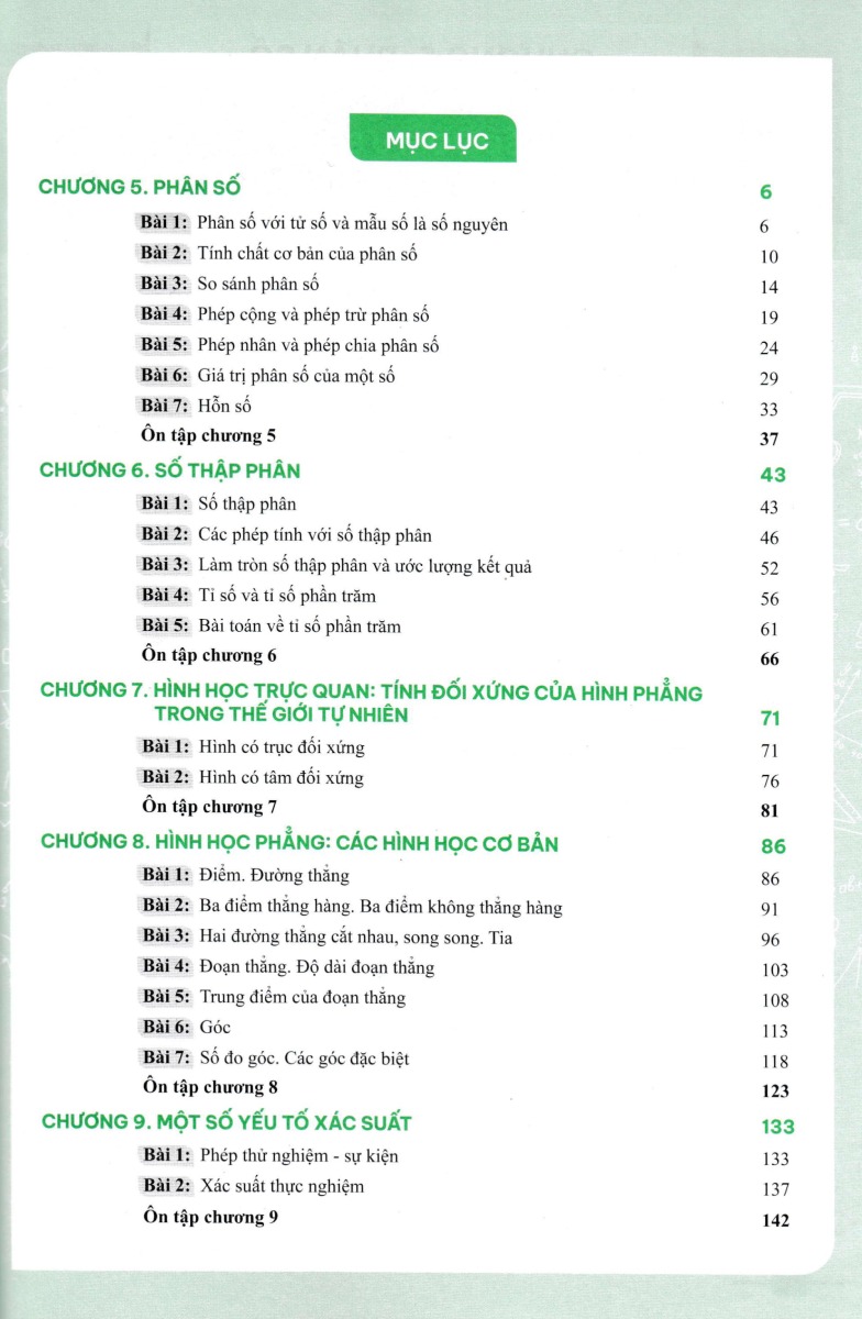 Mô Tả Sản Phẩm Chương 1: Số hữu tỉ Chương 2: Số thực Chương 3: Góc và đường thẳng song song Chương 4: Tam giác bằng nhau Chương 5: Thu thập và biểu diễn dữ