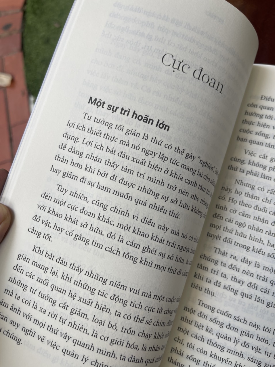 Sau cùng, tôi đã tự tìm ra cho mình thứ viên mãn hơn hết thảy, đó là đời sống giản dị. Thứ đời sống mà nghe qua thì không có gì hấp dẫn, không có gì đặc biệt và thật dễ để đạt tới, ấy thế mà nó lại được ưa chuộng và khuyến khích bởi rất nhiều vĩ nhân từ cổ chí kim. Giờ đây, nó là tư tưởng đang trỗi dậy mạnh mẽ, sống dưới cái tên “chủ nghĩa tối giản”. Đặc biệt hơn, nó đã trở thành một phong trào được. phát triển bởi những người trẻ, những con người hiện đại, đầy sức sống và giàu trí tuệ.”