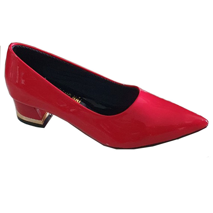 ✨Giày cao gót bít mũi đế vuông 3cm Trường Hải da bóng màu đỏ thời trang cao cấp CG0121