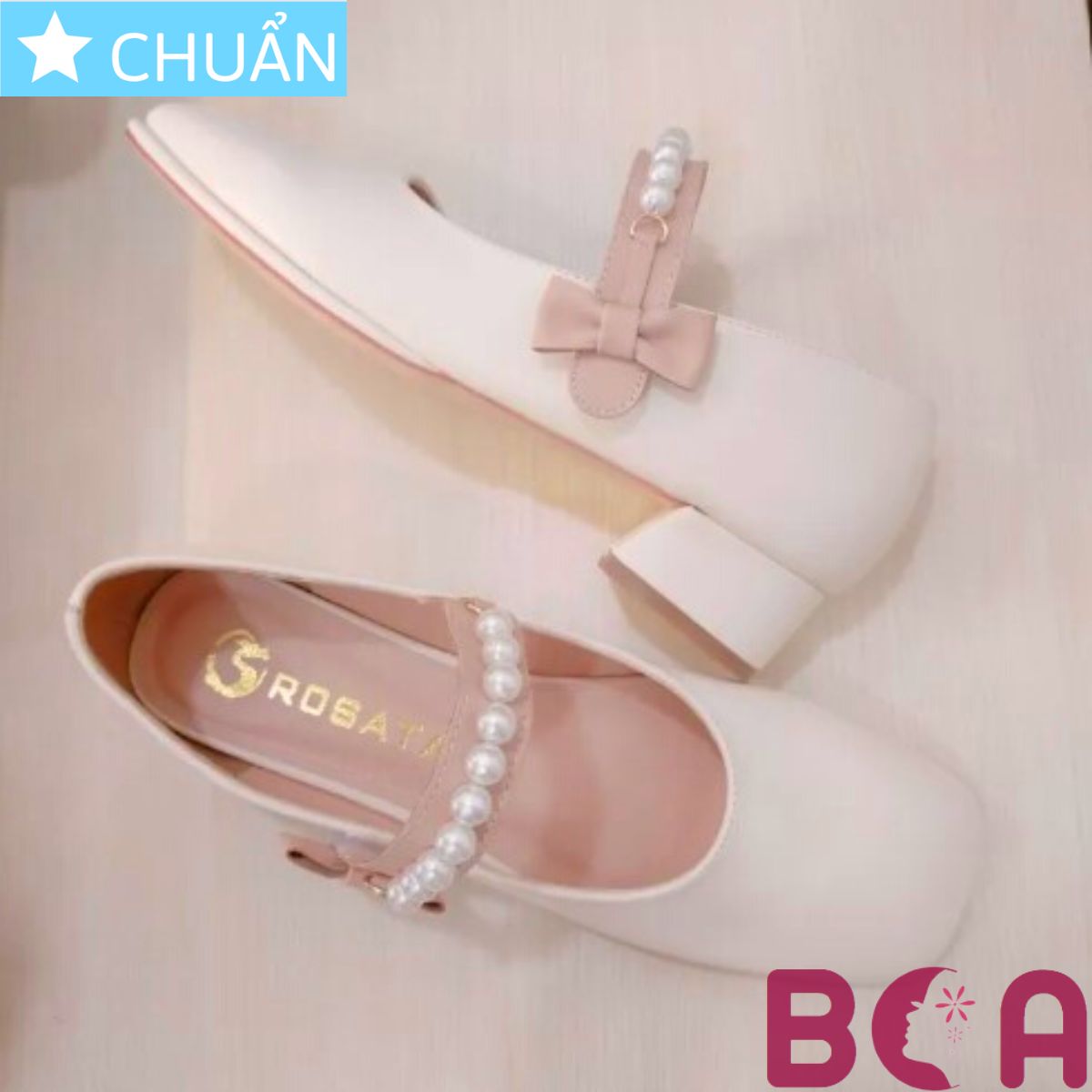 ✨Giày cao gót nữ màu trắng 4p RO430 ROSATA tại BCASHOP kiểu dáng công chúa với quai ngang đính ngọc tr.ai và nhấn nơ
