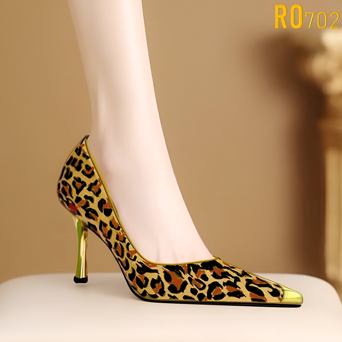 MÔ TẢ SẢN PHẨM: Giày nữ cao gót họa tiết beo ROSATA RO702 -8p- Beo - HÀNG VIỆT NAM - BKSTORE