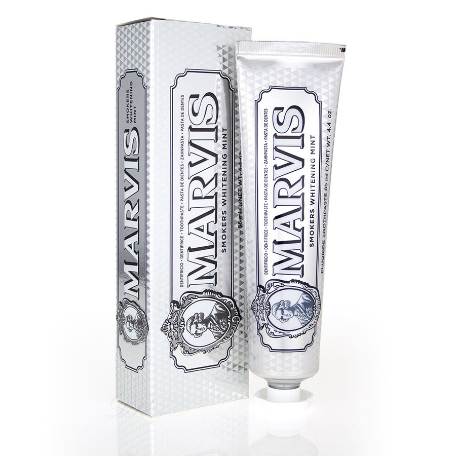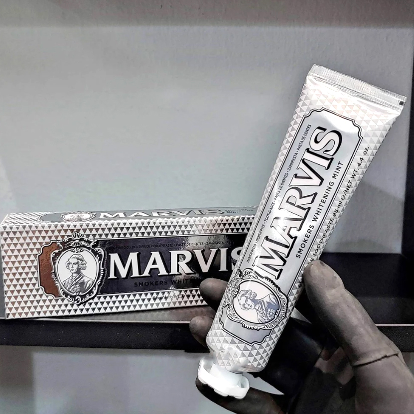 Kem Đánh Răng Marvis Smokers Whitening Mint 85ml được nhập khẩu từ Florence, Italy. Là một thương hiệu nha khoa nỗi tiếng được yêu thích suốt nhiều thập kỷ. Marvis làm sạch khoang miệng, giúp răng trắng dần lên từng ngày, không làm tổn thương nướu và lợi còn làm răng thêm chắc khoẻ, hương thơm vô cùng độc đáo đem lại cho bạn hơi thở luôn thơm mát.