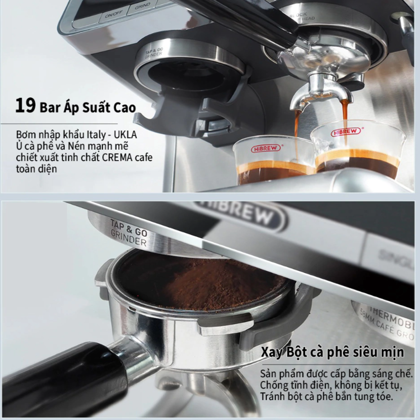 Máy pha và xay cà phê bán tự động 3 trong 1 Espresso, Cappuccino, Latte thương hiệu Mỹ cao cấp HiBREW H20 - Công suất 1500W 20bar - Hàng chính hãng Máy pha cà phê