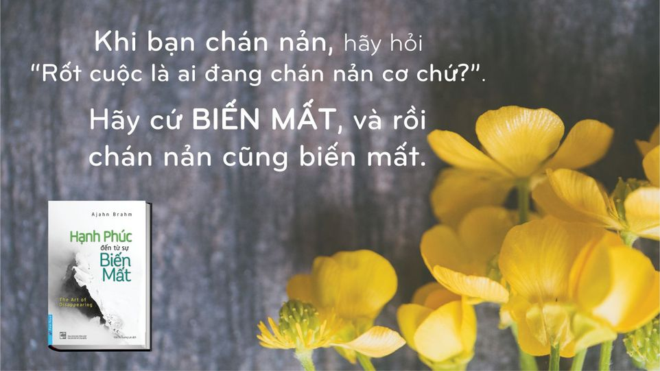 Đó là vì ta thường nghĩ đến mình và sợ mất đi những thứ “của mình”. Đối với Ajahn Brahm, chìa khóa để mở cánh cửa hạnh phúc vĩnh hằng và bình an chính là buông bỏ. Biến mất là dứt bỏ tất cả mọi thứ, không chuốc thêm vật chất hay giành giật địa vị. Khi ta dứt bỏ cái gì đó, dứt bỏ thật sự thì nó biến mất. Đó là sự biến mất từ trong ra ngoài, sự biến mất của cái tôi – bản ngã. Dứt bỏ cái tôi thì ta dứt bỏ được tất cả phù phiếm, ảo ảnh bên ngoài; dứt bỏ được những nỗi đau, lo lắng thua thiệt đi kèm nó. Từ đó, ta tìm được bình yên thực sự, tìm được niềm hạnh phúc bất diệt.