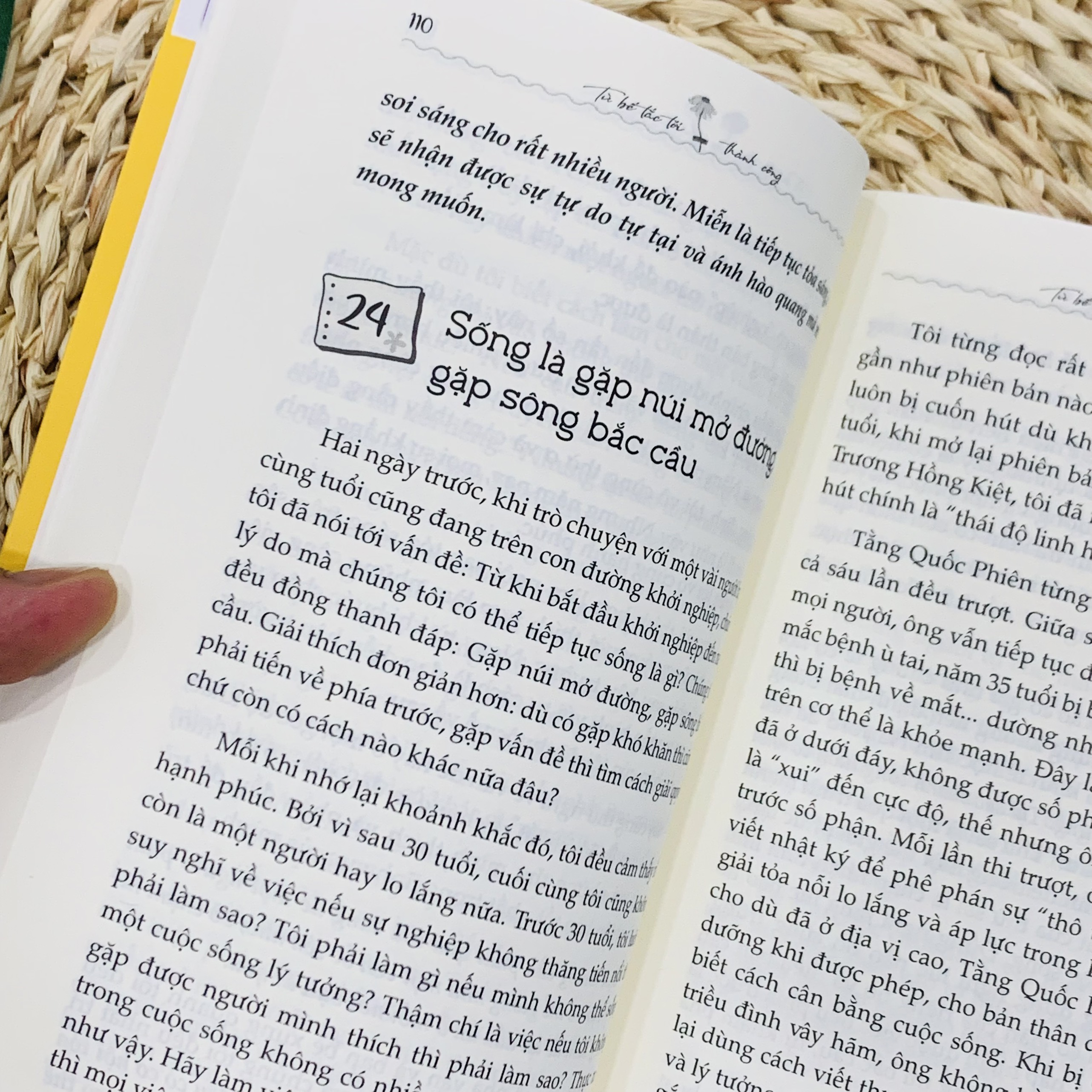 - Gian khổ bạn trải qua sẽ mở đường cho tương lai của bạn Vì sao hành trình vạn dặm bắt đầu từ một bước chân là một cuốn sách không thể bỏ lỡ? Bạn có cần động lực không? CÓ! “Người luôn chùn bước vĩnh viễn không thể trở nên ưu tú hơn, chỉ có trải qua muôn vàn thử thách và chà đạp, ở thời điểm ta đứng lên lần nữa mới có thể càng thêm rực rỡ lấp lánh. Chỉ có người dũng cảm tiến về phía trước mới có thể leo lên đỉnh cao của thế giới để ngắm cuộc sống này.” Đời người có lúc thăng lúc trầm, có lúc vui vẻ, có lúc khổ đau. Nhưng đối mặt với áp lực và khổ đau, con người dễ dàng từ bỏ. “Hành trình vạn dặm bắt đầu từ một bước chân” sẽ là cuốn sách có thể thấu hiểu những nỗi vất vả mà bạn đang trải qua, để bạn hiểu được rằng, khi muốn buông xuôi hãy nhớ, lá trà phải dùng nước nóng mới trở nên thơm ngát, con người phải có gian khó ban đầu mới tiến được đến thành công. Bạn có cần tỉnh ngộ không? CÓ “Mọi sự tầm thường đều là hình ảnh thu nhỏ của việc không đủ nỗ lực. Kẻ thù lớn nhất của chúng ta không phải già nua và đau khổ, mà là một trái tim bằng lòng với thực trạng, được ngày nào hay ngày ấy” Ngày ngày nằm ườn bấm điện thoại, mơ ước về cuộc đời của người khác, có mong muốn nhưng chỉ sợ lúc làm sẽ thất bại nên không dám thử. Nhưng bạn cứ tiếp tục như thế thì tương lai sẽ cười vào mặt bạn. Nếu bạn chưa tỉnh ngộ, vậy cuốn sách sẽ giúp bạn làm điều đó. Những bài học đắt giá và đanh thép sẽ khiến bạn phải đứng dậy ngay lập tức. Bạn có cần giải pháp không? CÓ “Chỉ bằng cách hành động, chúng ta mới có thể xây dựng tòa nhà tham vọng trong trái tim mình, không có hành động, hết thảy đều là trăng trong nước, hoa trong gương.” Có hành động mới có thành công. Không chỉ mang đến động lực và khiến bạn tỉnh ngộ, tác giả mang đến những giải pháp thiết thực để bạn làm được những gì mình muốn. Chỉ bằng cách hành động, chúng ta mới chạm được đến ước mơ. Những bài học đắt giá trong cuốn sách Hành trình vạn dặm bắt đầu từ một bước chân Ý nghĩa của gian khổ: Người luôn chùn bước vĩnh viễn không thể trở nên ưu tú hơn, chỉ có trải qua muôn vàn thử thách và chà đạp, ở thời điểm ta đứng lên lần nữa mới có thể càng thêm rực rỡ. Chỉ có người dũng cảm tiến về phía trước mới có thể leo lên đỉnh cao của thế giới để ngắm cuộc sống này. Có lúc lên lúc xuống trong đời là chuyện bình thường: Vạn sự có được thì phải có mất, có mất ắt có được, mọi thứ chỉ là tương đối, trân quý sinh mạng, sống cuộc đời đầy giá trị và đẹp đẽ. Ý nghĩa của cuộc sống: Chúng ta không thể sống một cuộc đời mục nát. Ăn để sống, nhưng sống không chỉ để ăn. Trong cuộc đời con người, ý nghĩa cuộc sống rốt cuộc nằm ở đâu? Con người sống vì cái gì? Cuộc sống có thể không có quá nhiều ý nghĩa, nhưng nếu đã sống, chúng ta phải thiết lập một hướng đi trong cuộc sống cho chính mình. Nếu không cuộc sống dù tươi đẹp đến đâu cũng như nhai sáp, nhạt nhẽo và không hề có giá trị. Mơ ước là ngọn đèn soi đường chỉ lối: Lý tưởng là ngọn hải đăng của hành trình nhân sinh, là mục tiêu phấn đấu của cuộc đời, chỉ dẫn phương hướng tiến về phía trước của cuộc đời chúng ta, chỉ cần chúng ta kiên định đi theo phương hướng này, tôi tin rằng, chúng ta cuối cùng nhất định sẽ tới bờ bên kia thành công. Lý tưởng thuộc về mỗi chúng ta. Vì vậy, chúng ta hãy lập cho mình những mục tiêu, lý tưởng sống cao cả ở tuổi trẻ để cuộc sống thêm ý nghĩa và giá trị. Những trích dẫn hay trong sách giúp bạn vững bước để thay đổi