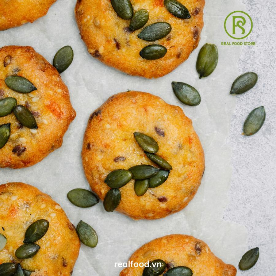 (Hình ảnh mẫu mã, bao bì sản phẩm sẽ thay đổi theo từng đợt) HẠT BÍ REAL FOOD hạt tươi khi rang lên sẽ giòn, khi ăn có vị ngọt bùi, béo. Phù hợp để