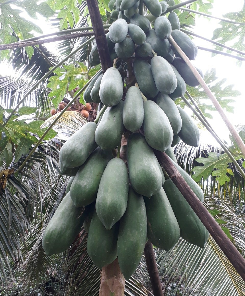 - Đặc tính giống: Đu đủ ruột vàng F1 - giống kháng bệnh tốt, trái hình tròn bầu dục , trọng lượng trung bình: 1.2 - 1.5 kg / trái ( tùy vào chân đất và chăm sóc), rất sai trái, cho năng suất cao, thịt dày màu vàng, ít hạt, thơm và ngọt
